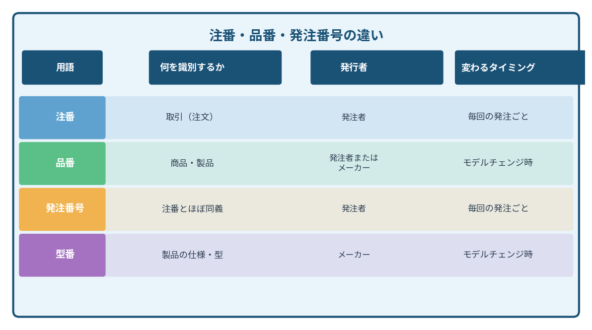 受発注業務では、注番と似たような言葉がいくつか存在します。